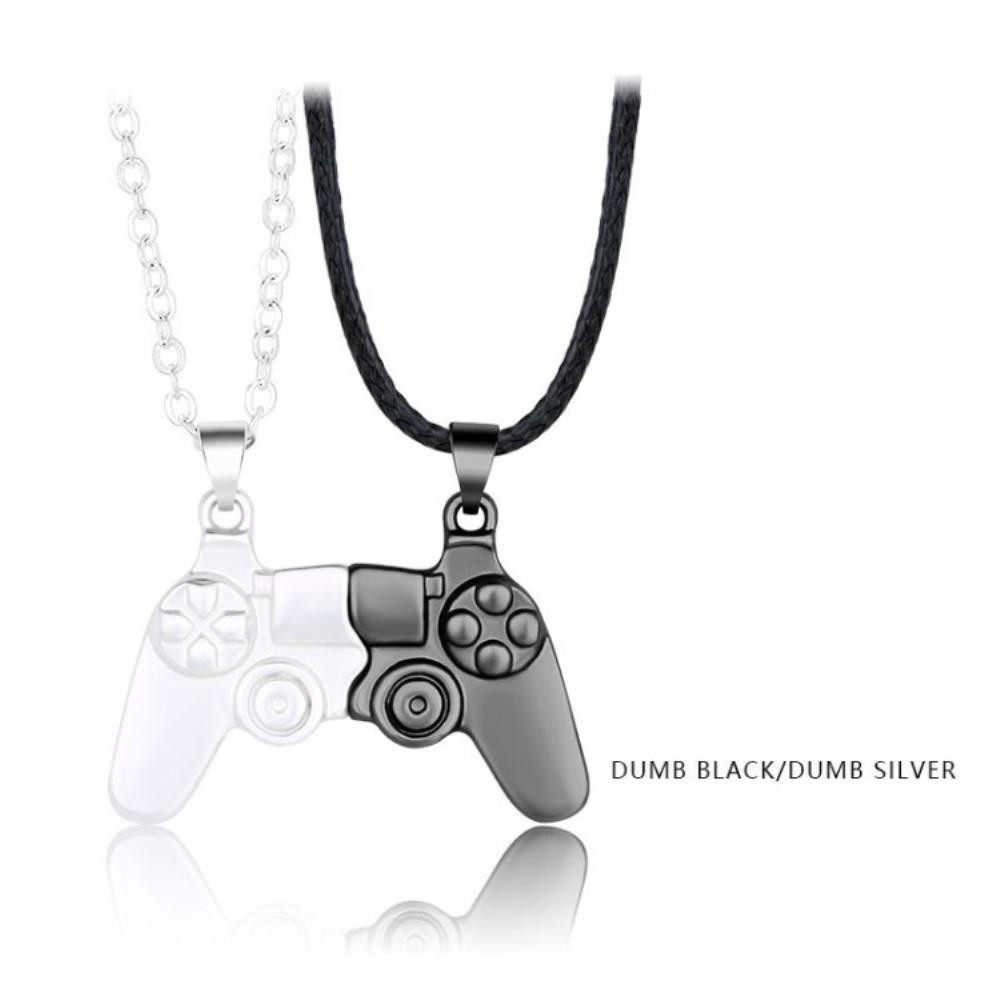 Magnetisk spilcontroller halskæde par matchende vedhæng til venner Valentinsgaver Elsker Sort/Sølv