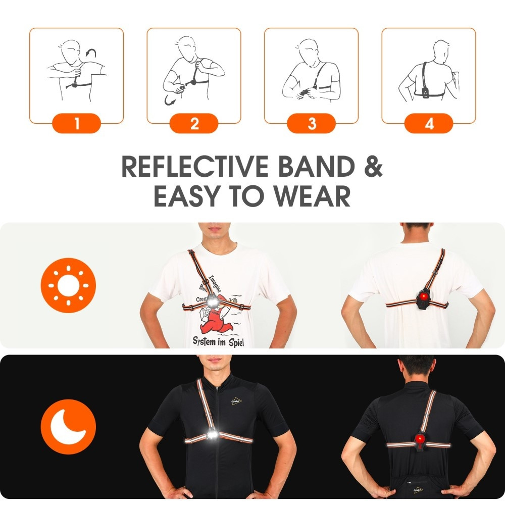 WEST BIKING YP0701305 Udendørs Sport LED Lys IPX4 Vandtæt Natløb Cykling Advarsel Bryst Ryglys Indbygget 2000mAh genopladeligt batteri, giver lang brugstid