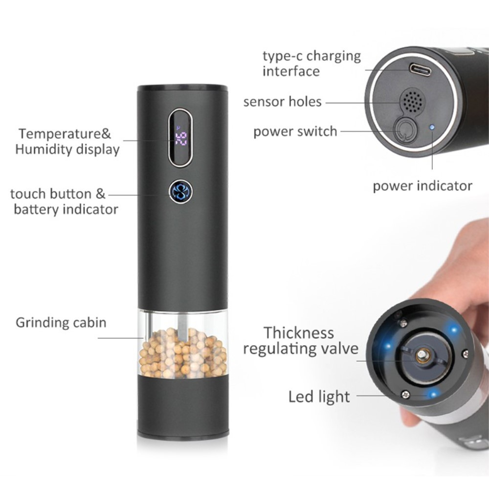 Maling af krydderier, inklusive sort peber, hvid peber, salt, rød peberflager, rosmarin, anisfrø, hørfrø og spidskommen ubesværet, elektriske peberkværne til krydderier og frø er også perfekte gaver til dine kokke og kokkevenner