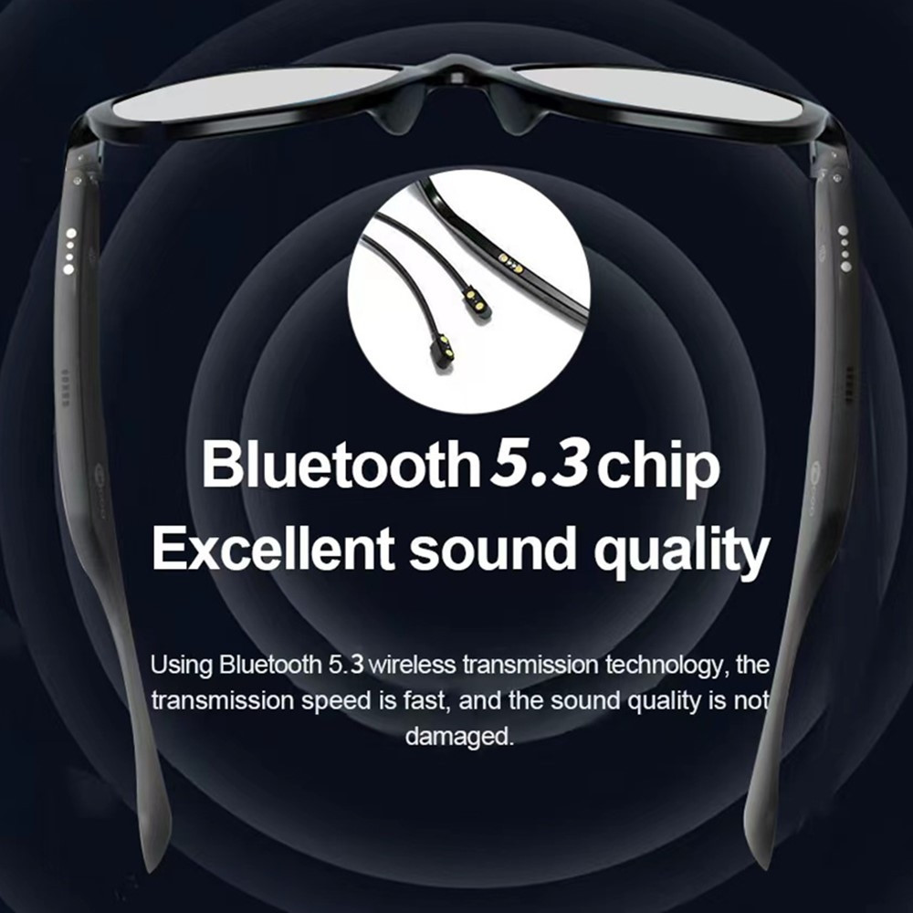 LENOVO LECOO C8-Lite Trådløse Hovedtelefoner Bluetooth Smart Solbriller Headset Briller - Grå Bruger avanceret Bluetooth 5.3 teknologi, som sikrer hurtigere og stabil signaloverførsel