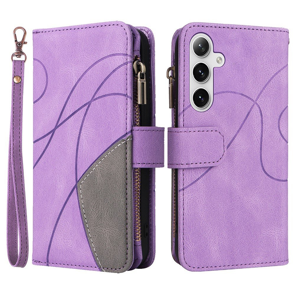 KT Multifunktions Series-5 til Samsung Galaxy S24 telefonetui Shell Præget buet linjemønster Tofarvet PU-lædertegnebogdesign Smartphone-belægning
