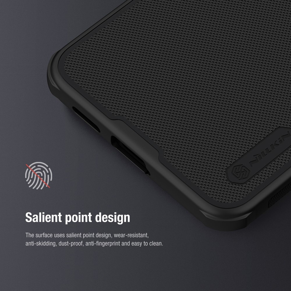 NILLKIN Super Frosted Shield Hard Plastic Case til Samsung Galaxy S24 - Sort Nillkin superfrostet skjold af høj kvalitet er lavet af importeret PC-materiale og dannet af den meget præcise injektion. Overfladen med fremtrædende punktdesign er slidstærk, skridsikker, støvtæt, anti-fingeraftryk og nem at rengøre. Begge sider bruger den nyeste støvfri matte UV-malingsteknologi, hvilket giver behagelig følelse af berøring og elegant udseende. Det beskytter din telefon mod ridser, støv, snavs og andre mindre skader i daglig brug.