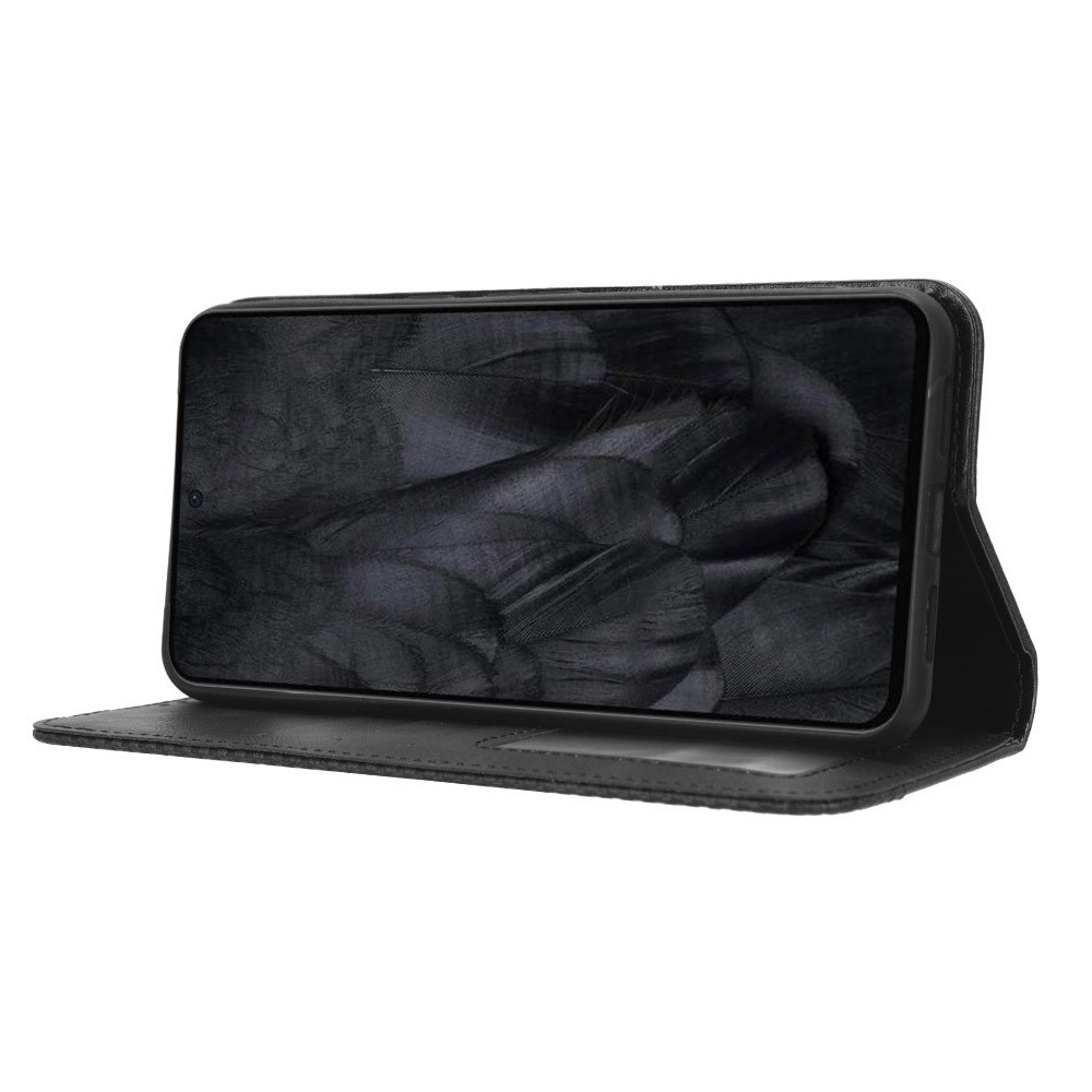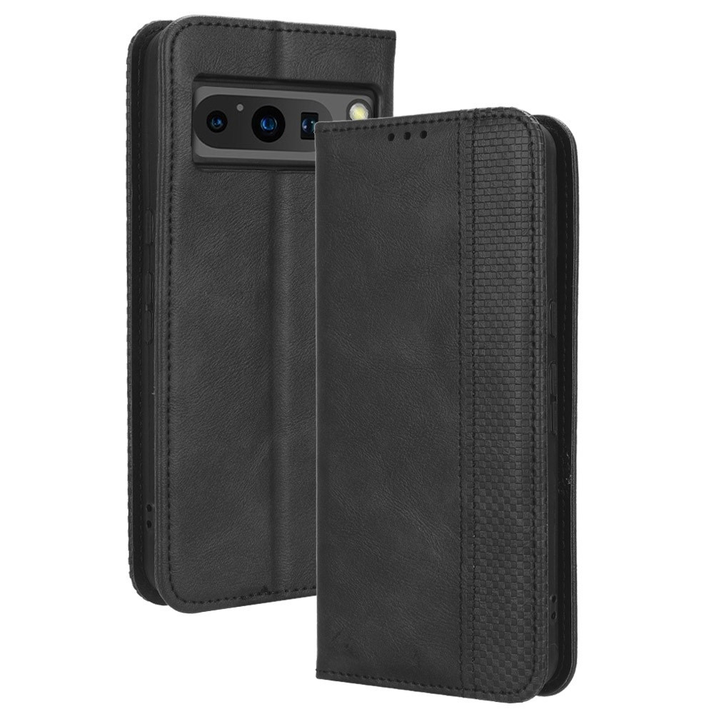 Vintage stil tegnebogstativ Autoabsorberet lædertelefonetui Beskytter til Google Pixel 8 Pro - Sort