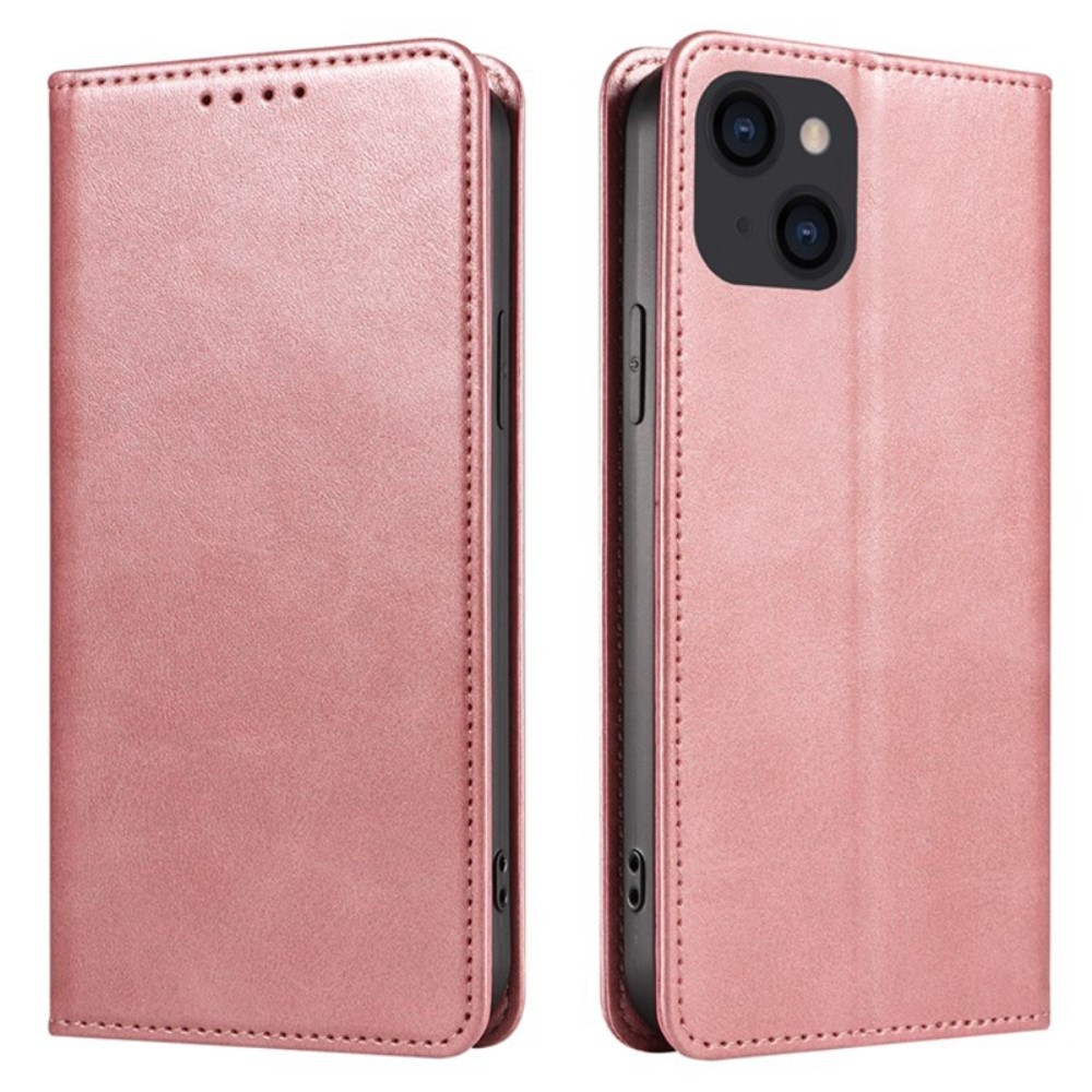 Wallet Stand Phone Case til iPhone 15, kalvstruktur Stødsikkert mobiltelefoncover - Rose Gold Kendetegnet ved læder+TPU-materiale, fin kvalitet og elegant udseende