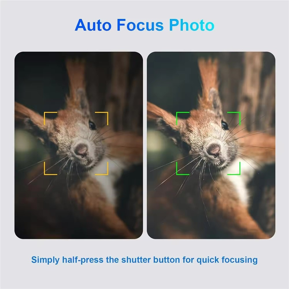 【Autofocus and 16X Digital Zoom】Experience precise autofocus that clearly highlights every detail with half-pressing the shutter button for quick focusing. 16X digital zoom allows you to easily capture breathtaking landscapes from a distance.