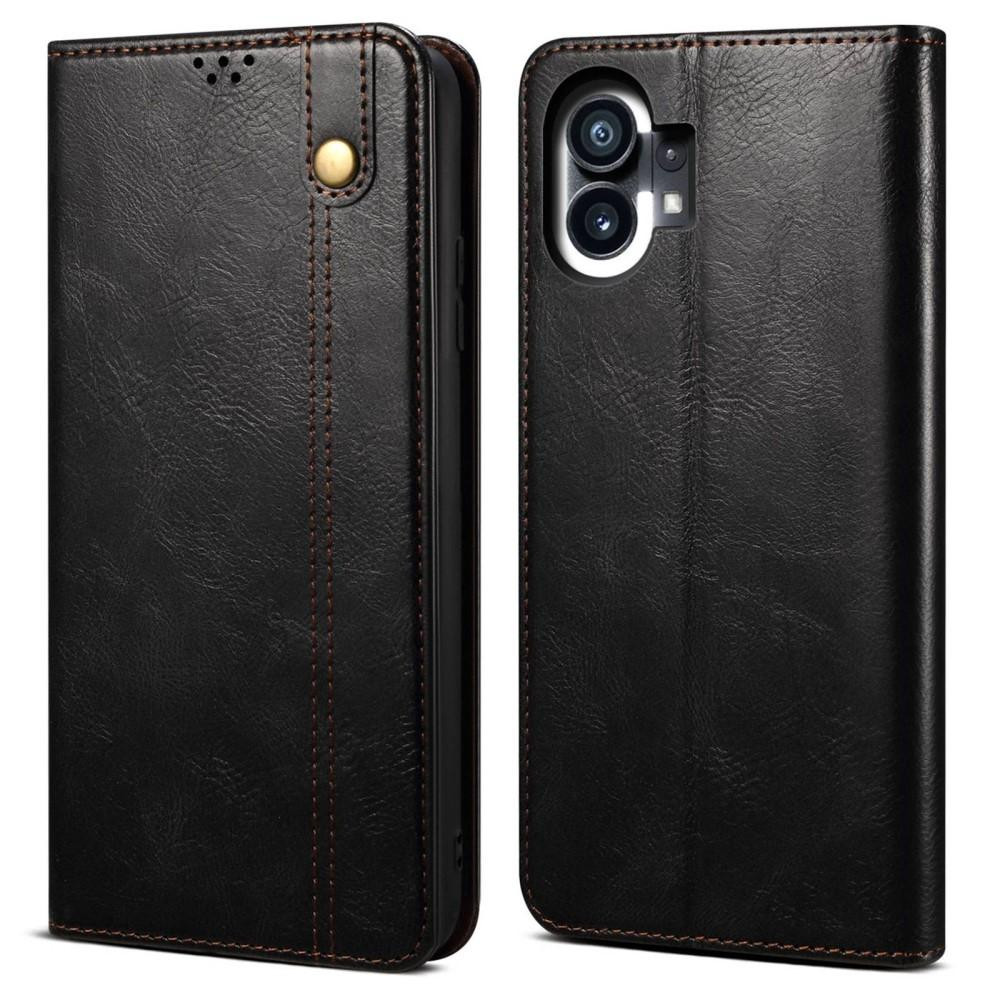 For Nothing phone (1) 5G Waxy Crazy Horse Texture PU Leather Flip Case Shockproof TPU Inner Shell Wallet Stand Protective Phone Cover - Black Constructed with TPU and PU leather, dual protection, full of security
