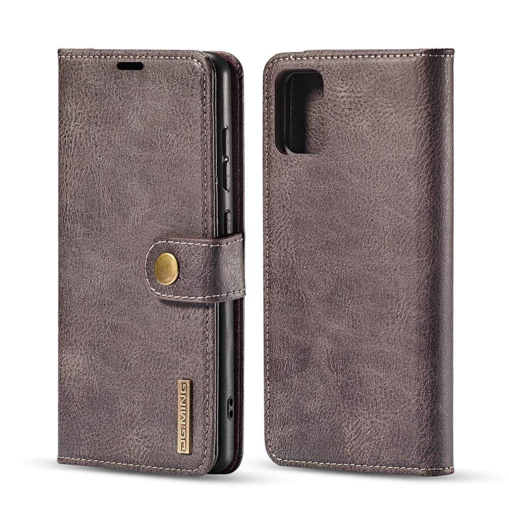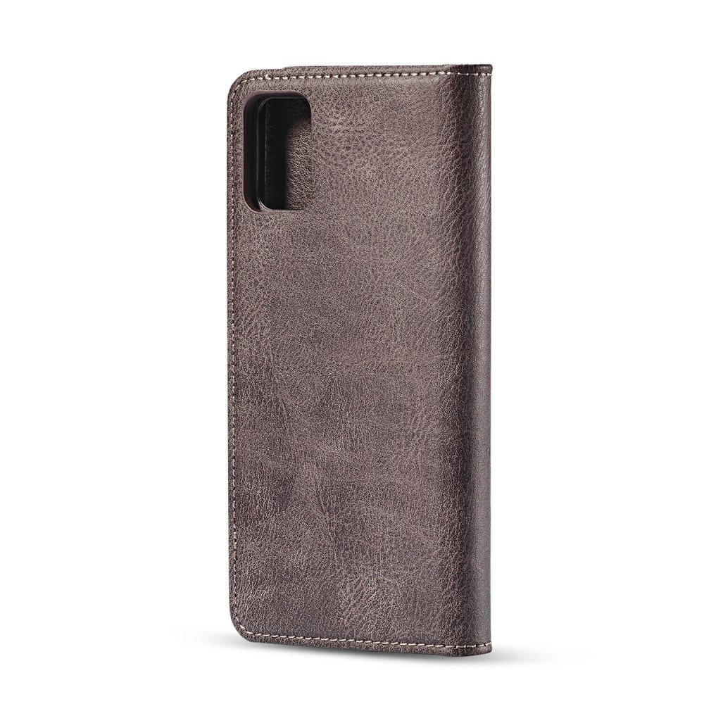 DG.MING Detachable 2-in-1 Split Leather Wallet Phone Shell + PC Back Case for Samsung Galaxy A51 - Grey This case features 2-in-1 design with a split leather wallet cover and a detachable leather coated plastic back shell, which can be attached together by magnetism. High quality materials with exquisite workmanship ensure an elegant look and comfortable hand feeling.