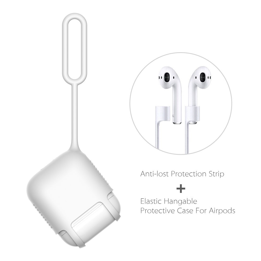 DAITE Soft Silicone Apple Airpods Ear Phone Protector Cover with Anti-lost Wire Rope - White • Delicate appearance, unique and decent