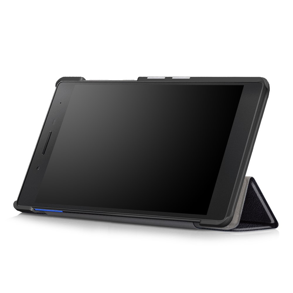 PU Leather Tri-fold Stand Case for Lenovo Tab 7 Essential Wifi (NOT LTE/4G) - Black • PU leather + PC cover, durable construction