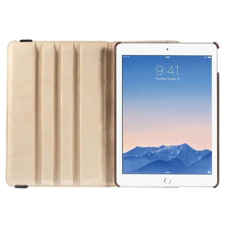 Snyggt and tunt lädercase som kan roteras 360°. Hård utsida and mjuk insida av PU-läder som skyddar din iPad Air på bästa sätt. Ställ with tre lägen: stående för dokumentläsning, liggande för filmvisning and platt för att kunna skriva på surfplattan. Fodralet har hål för kamera, reglage and kontakter