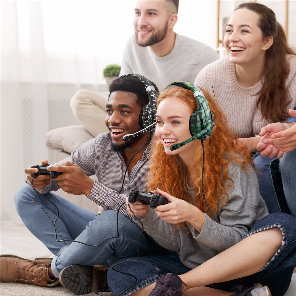 KOTION Gaming Headset LED Wired Headphones with Microphone Camouflage LED