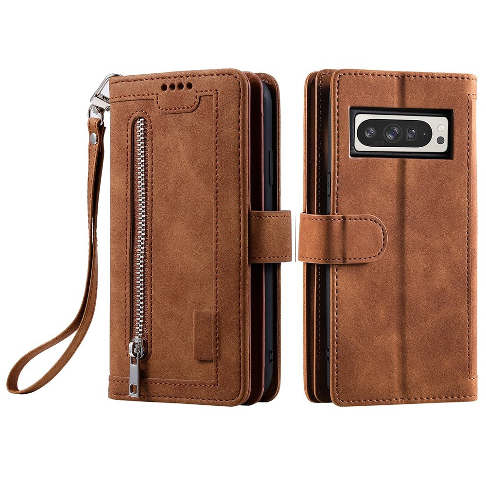 For Google Pixel 10 Pro XL / 9 Pro XL Case Zipper Pocket PU Leather Phone Cover with 9 Card Slots