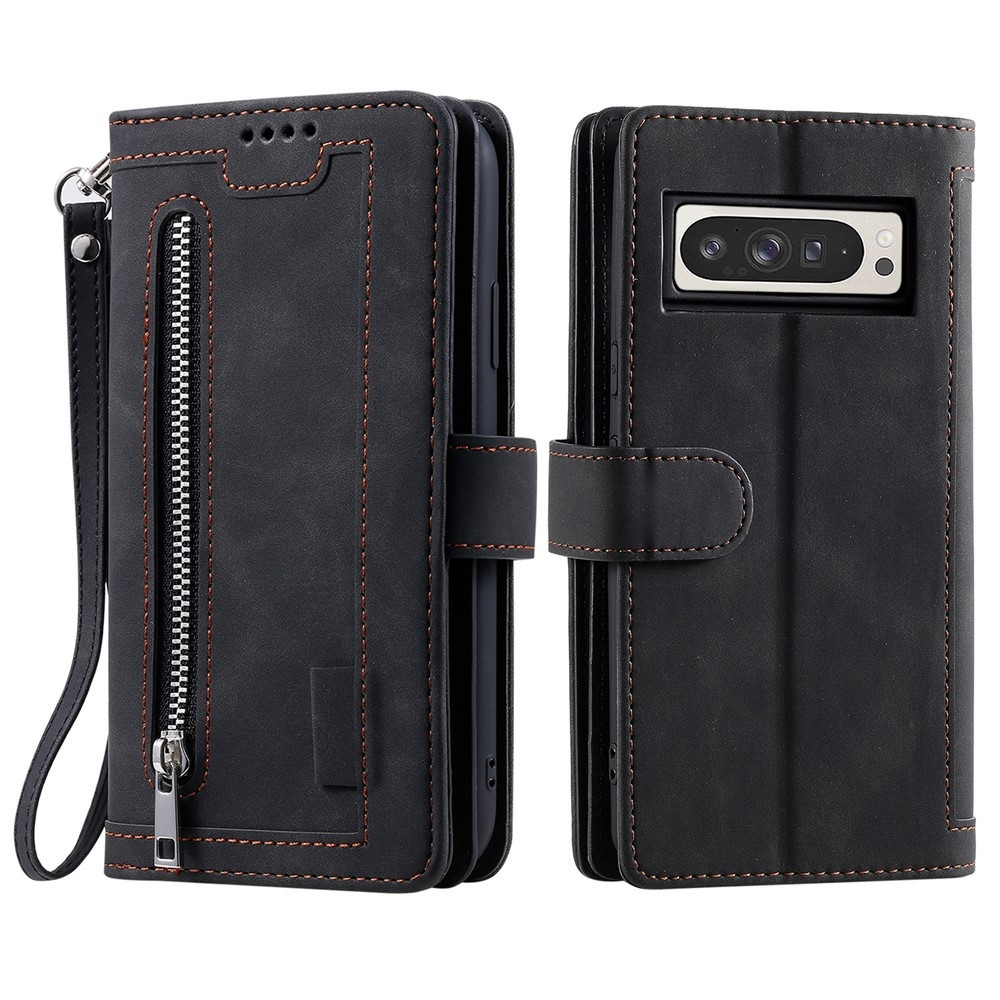 For Google Pixel 10 Pro XL / 9 Pro XL Case Zipper Pocket PU Leather Phone Cover with 9 Card Slots
