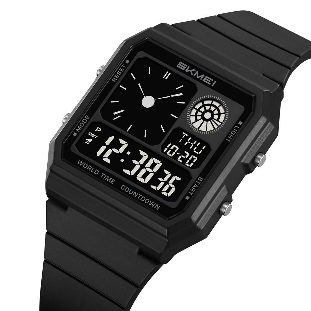 SKMEI 2347 Square Electronic Watch, Multifunctional Sports Watch with EL Backlight - Black+black