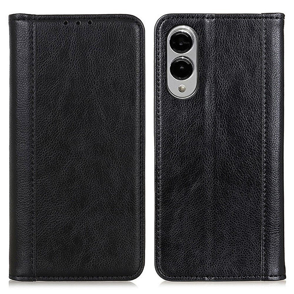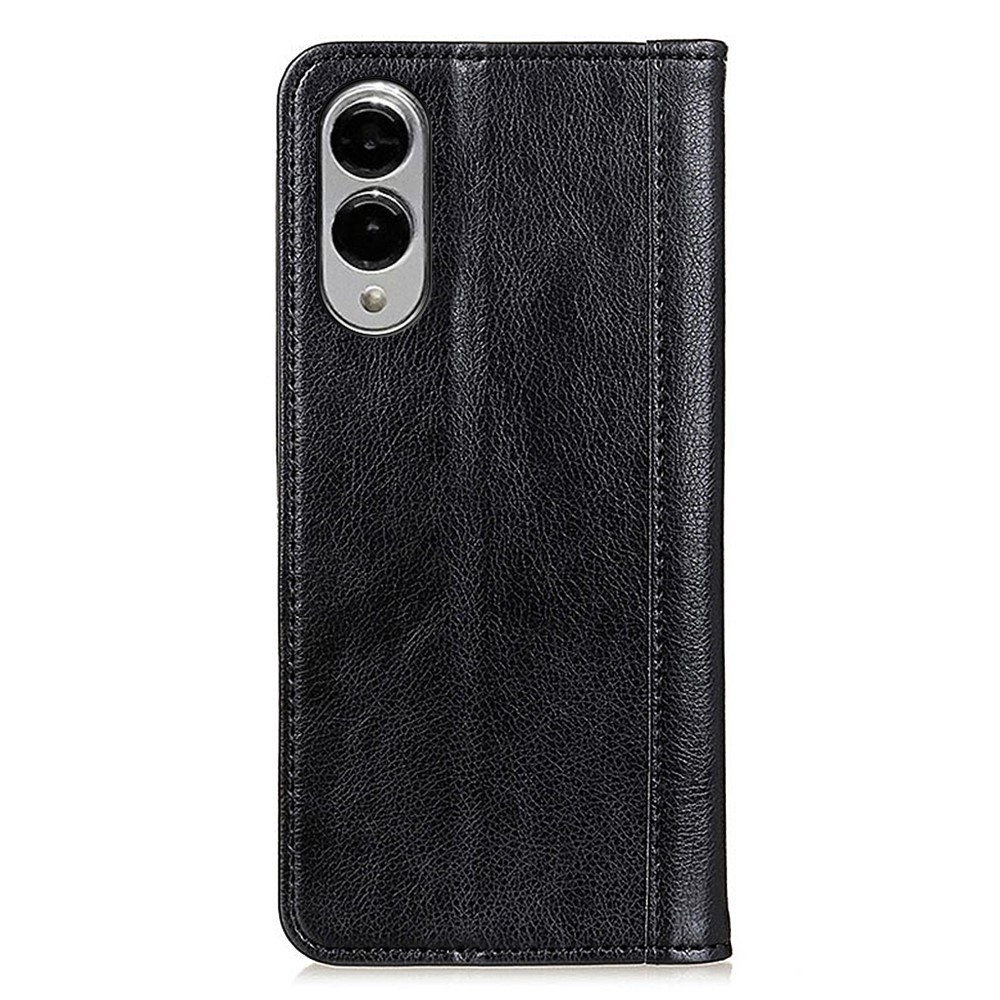 For Samsung Galaxy S25 Edge Stand Case Split Leather Litchi Texture Wallet Phone Cover - Black
