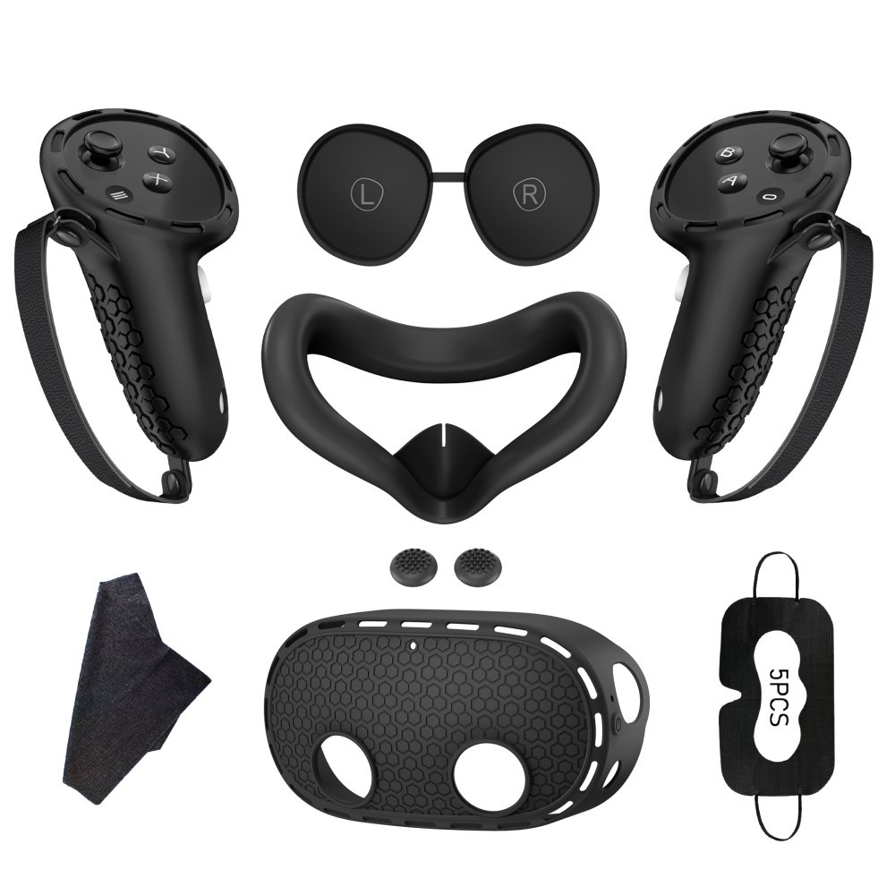 For Meta Quest 3S Silicone Accessory Set with VR Headset Cover / Control Grip / Face Mask - Black