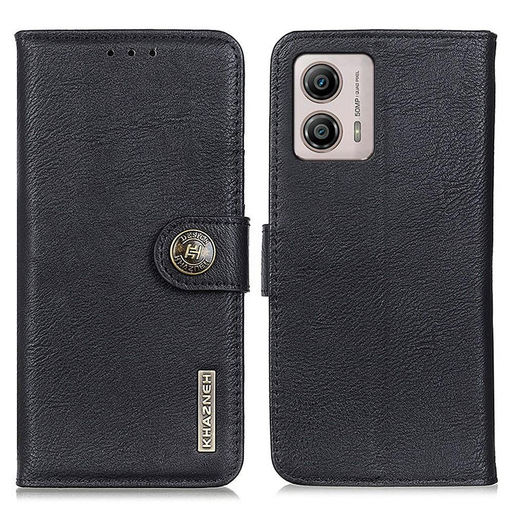 KHAZNEH Retro Style Protector Case Wallet Stand Cover for Motorola Moto G53 5G - Black