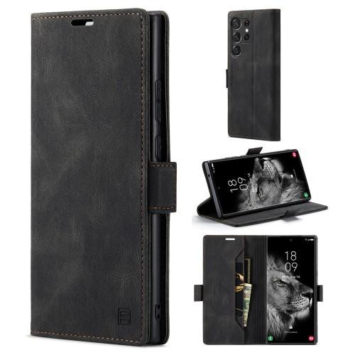 AUTSPACE A01 Retro Wallet Case for Samsung Galaxy S23 Ultra - Black