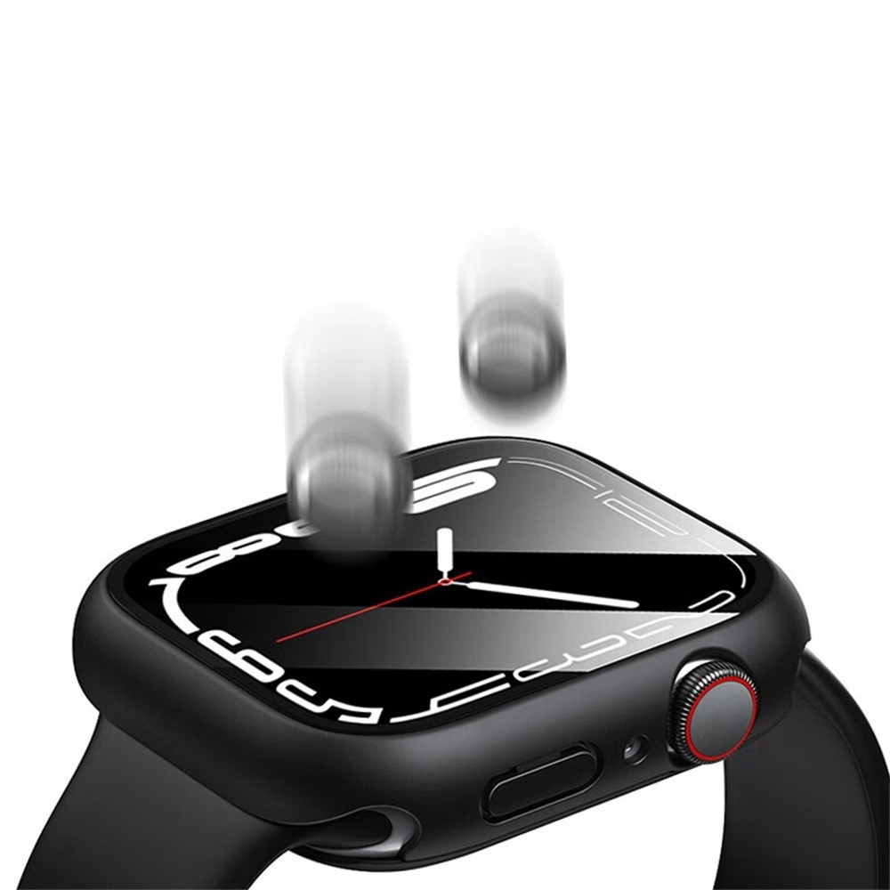For A Watch Series 10 46mm Case Shell with tempered glass - black