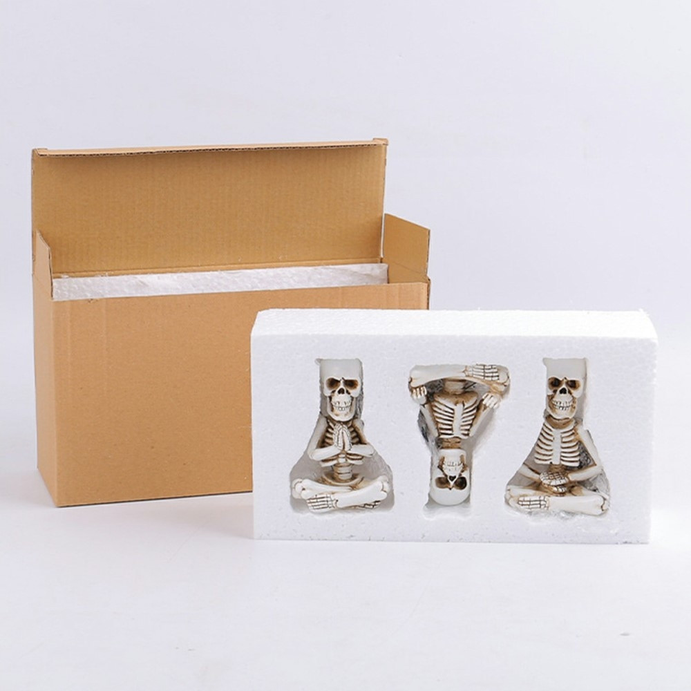 3 PCS Halloween Desk Decoration Zazen Skeleton Figures Resin Decor Mini Skull Statue Premium Materials: These are cast in quality resin with polished lifelike leg details and realistic body lines