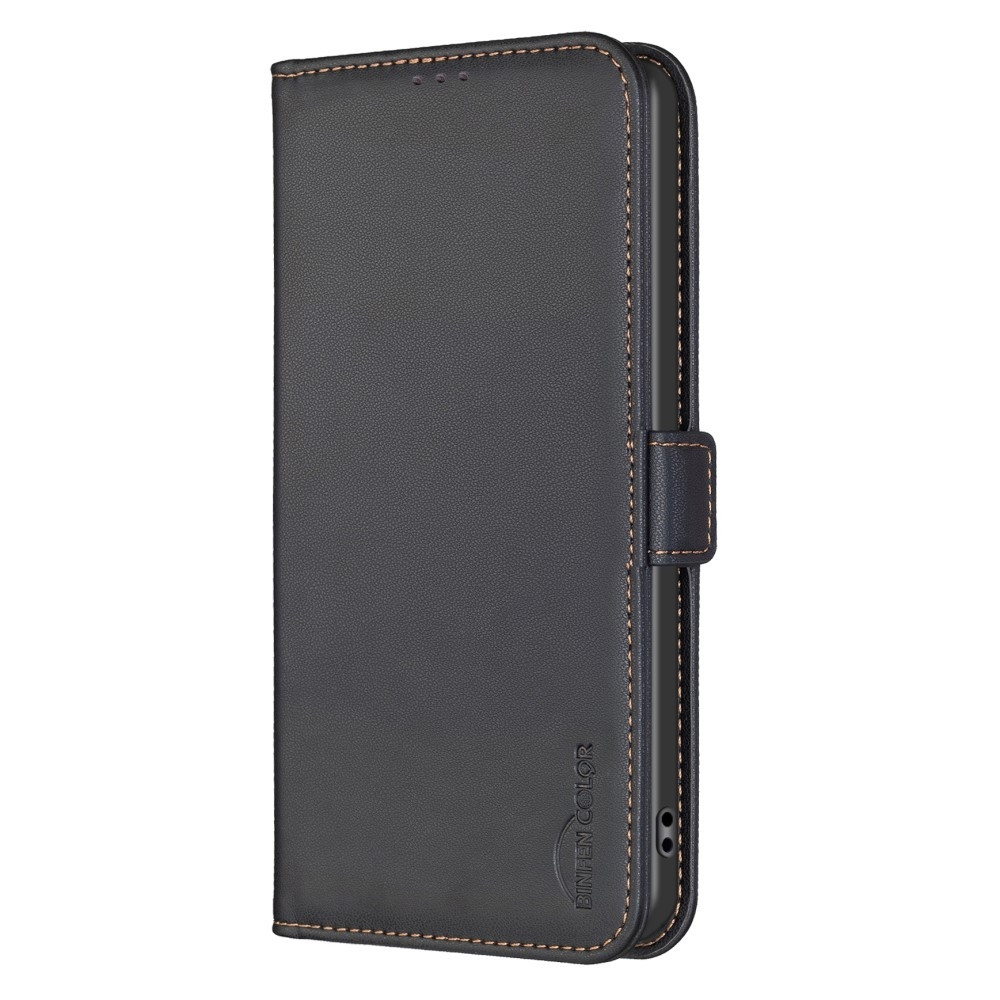Shockproof Cell Phone Cover For Motorola Moto G85, Card Holder, Stand Anti-fall Phone Case - Black Premium TPU + PU leather shell with rhombus-like imprinting, stylish and delicate