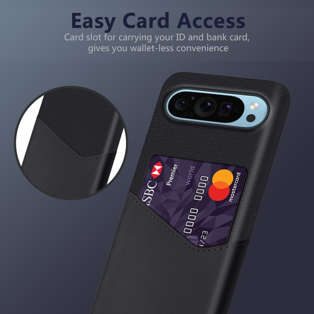 KSQ Card Slot Holder Cloth Texture Hybrid Protective Rugged Phone Case for Google Pixel 9 / 9 Pro - Black