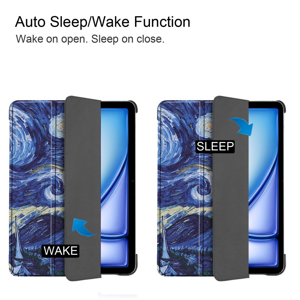 For iPad Air 11 (2024) Case Auto Wake / Sleep Tri-fold Stand Leather Tablet Cover - Painting This case is characterized by delicate PU leather, combined with a PC inner case, fine quality, and a tempting appearance. Tri-fold stand design provides a suitable angle for you to read, type, and watch videos, simplifying your work and life. Microfiber lining is scratch-proof and anti-dirt, protecting your tablet's screen.