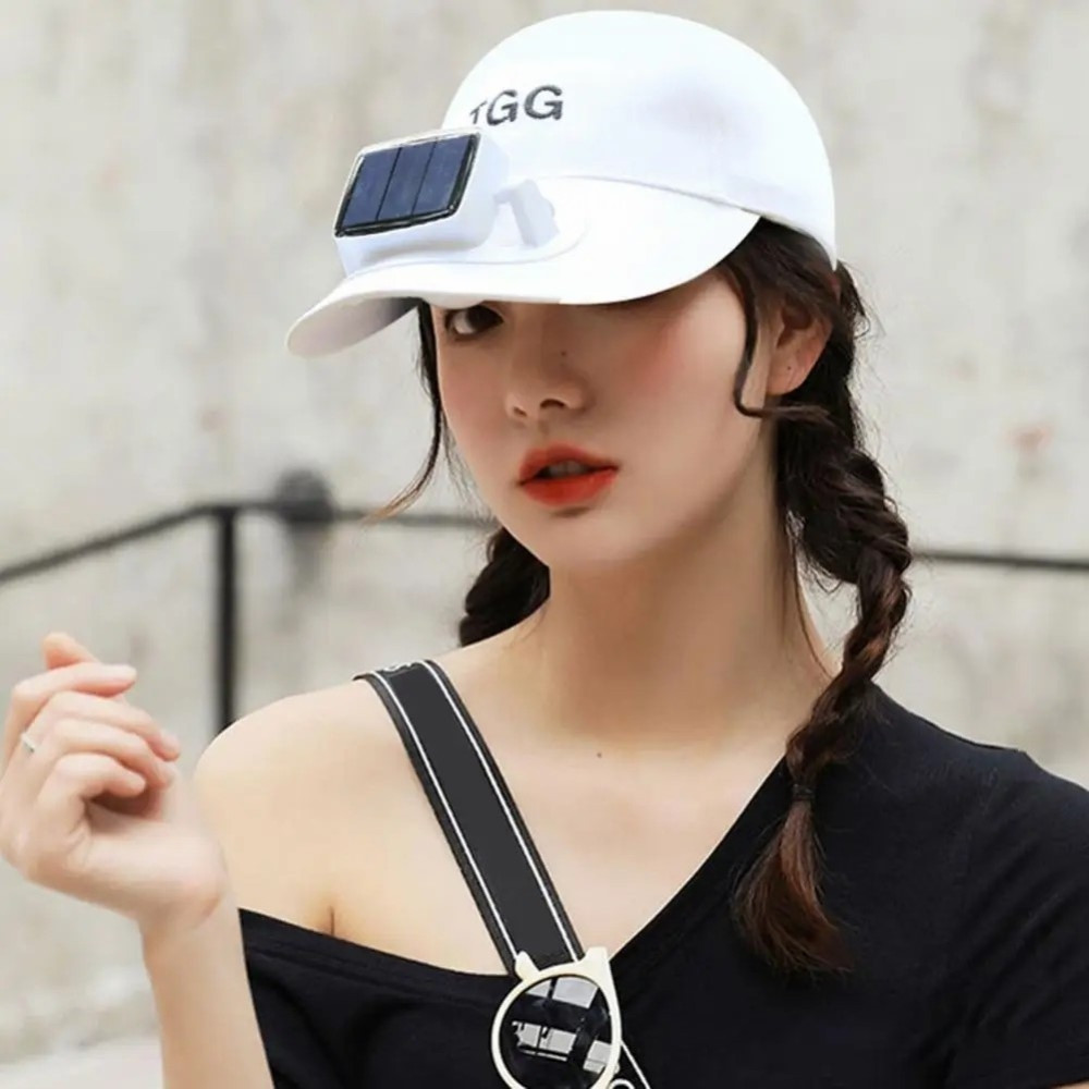 T15 Summer Outdoor Sports Sun Shade Hat Solar Small Fan Baseball Cap - White The small fan has a protective design to protect eyes and face and prevent long hair from tangling