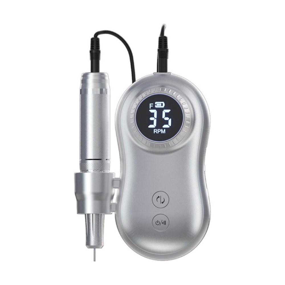 JF602 Acrylic Nail Drill Rechargeable 30000RPM Electric Nail File Machine for Nail Art Manicure Pedicure - Silver Pause/Start buttons for powerful nail polish control