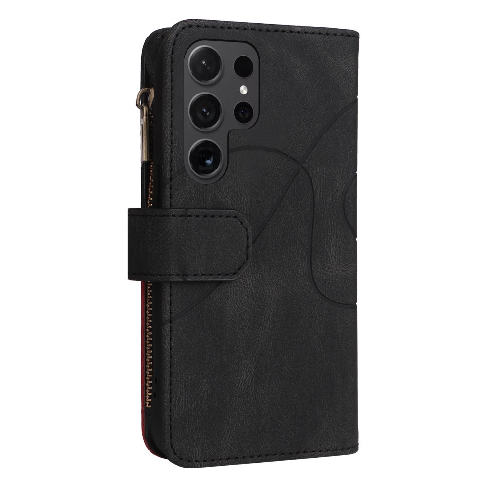 KT Multi-function Series-5 For Samsung Galaxy S24 Ultra Phone Case Shell Imprinted Curved Line Pattern Bi-color PU Leather Wallet Design Smartphone Covering