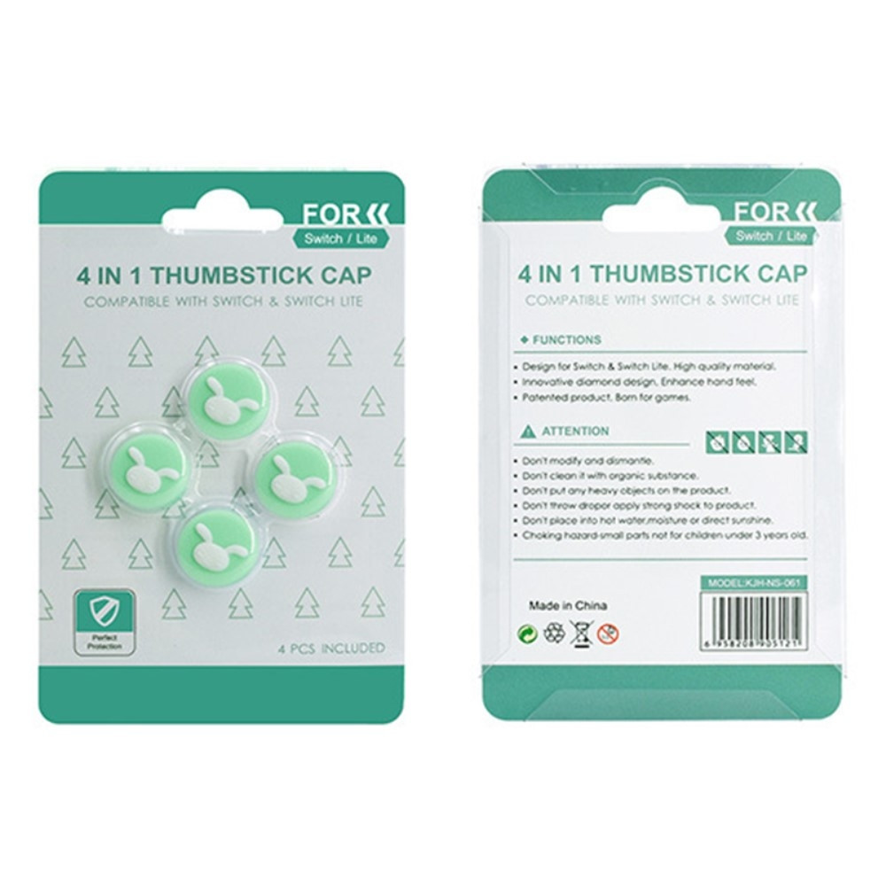 NS-061 for Nintendo Switch / Switch Lite 4 in 1 Cartoon Rabbit Silicone Thumb Stick Hat - Green+White Offering a unique grip and feel, elevate your gaming performance with these specially designed thumbstick caps for Nintendo Switch/Switch Lite