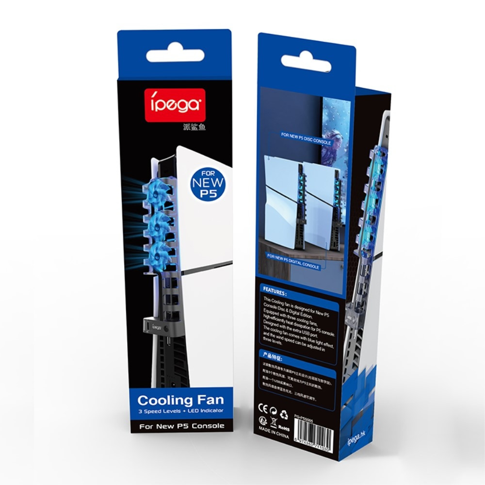 IPEGA PG-P5S005 For PS5 Slim Game Console Cooling Fan with USB Port + Light This product is suitable for PS5 Slim digital version and optical drive version