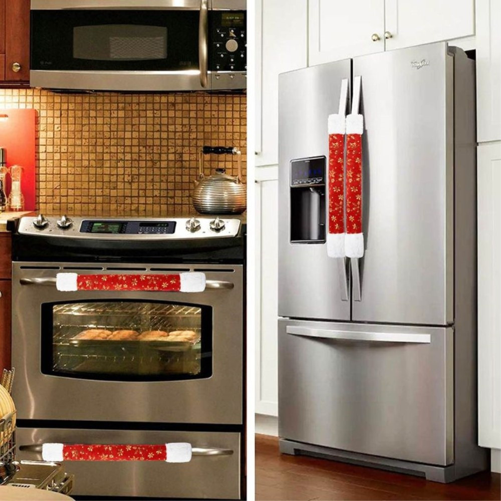 4pcs Christmas Refrigerator Door Handle Cover Set Kitchen Appliance Handle Sleeve Cover New Year Decorations Made of double lined fabric, durable to use
