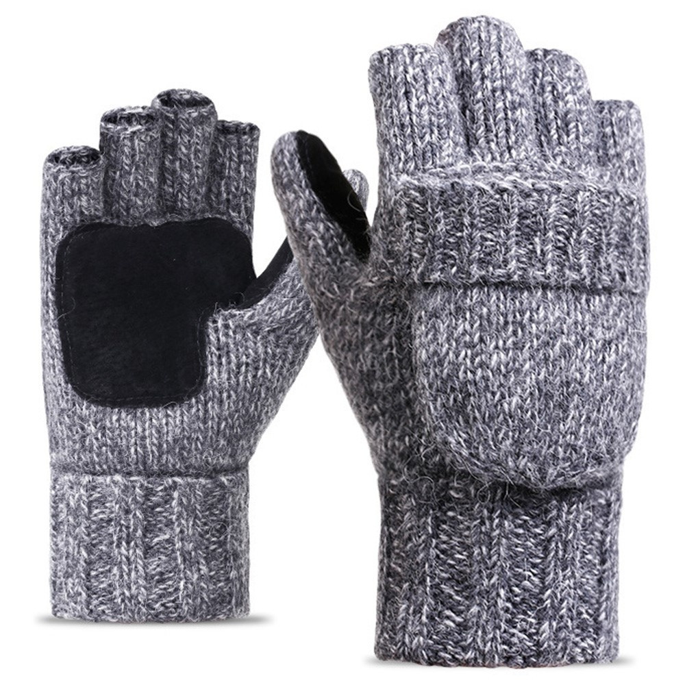 Unisex Mittens Warm Wool Gloves Half Finger Knitted Gloves Cover - Light Grey