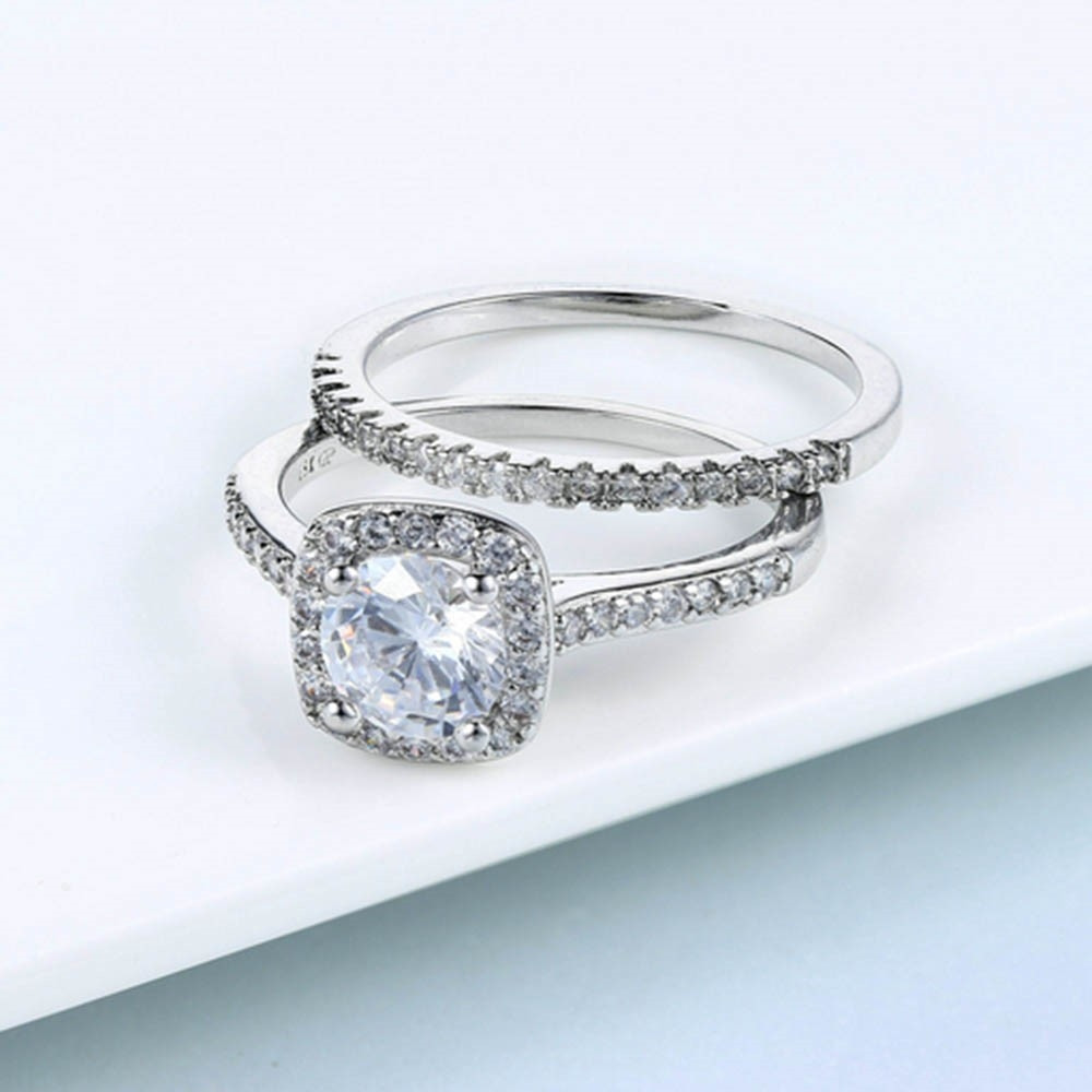 JZX12 2pcs Women's Rings Set Electroplated Cubic Zirconia Stackable Rings Girls Wedding Rings - Size 8 / Silver The engagement rings set for women, in 2 different styles, 2MM stacking rings, thin and beautiful