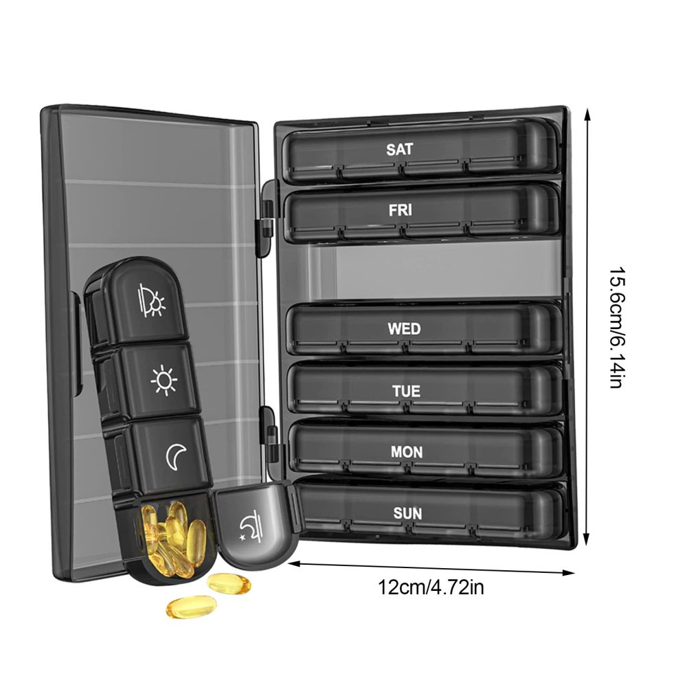 28057 Weekly Pill Organizer 7-Day Portable 28 Grids Large Daily Pill Box PP+ABS Medicine Organizer The daily pill box organizer has a large space, allowing you to fill and sort weekly pills in advance, and you can easily track and maintain the medication plan through it