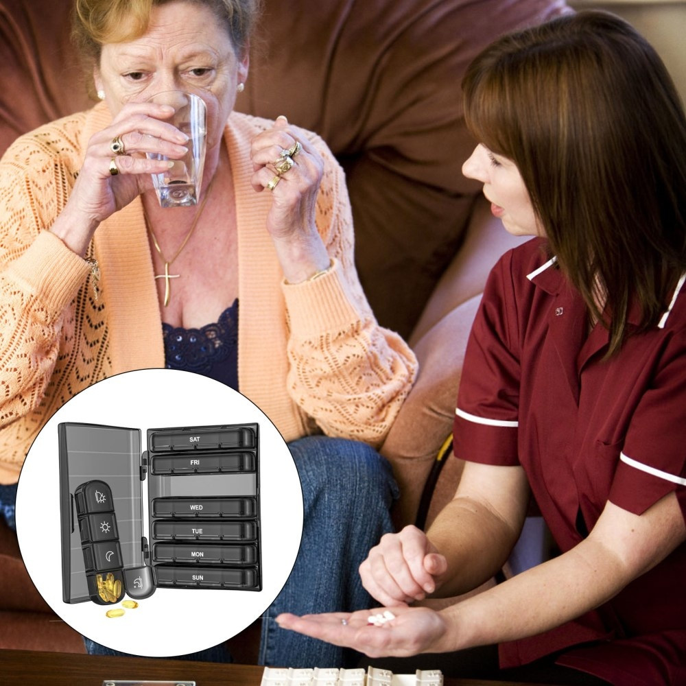 The black surface is lightproof to avoid pill deterioration and protect medication privacy
