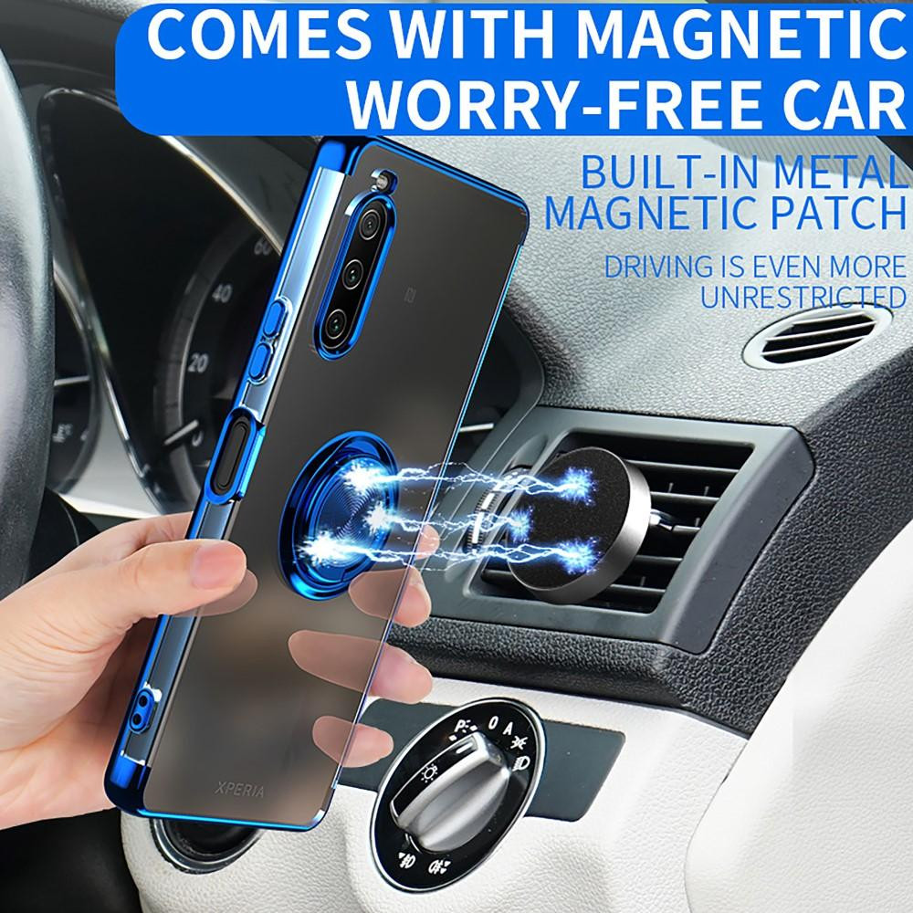For Sony Xperia 10 V Electroplating TPU Phone Case with Ring Kickstand Shockproof Back Cover - Black Made of high-quality TPU material, soft and durable