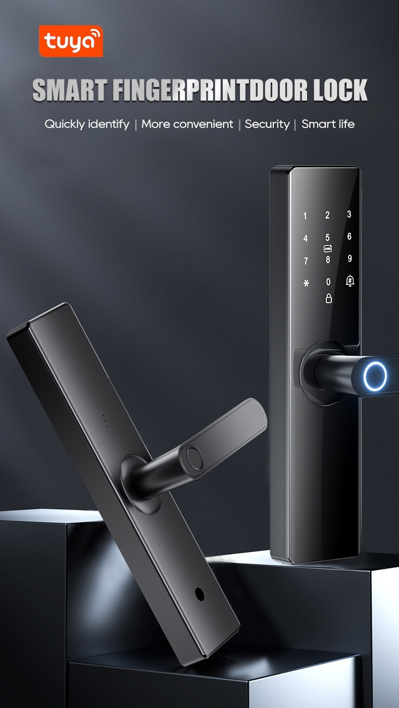 Tuya Smart Electronic Door Lock puoliautomaattinen sormenjälkitunnistin kodin turvallisuuteen - 17 cm lukkorunko
