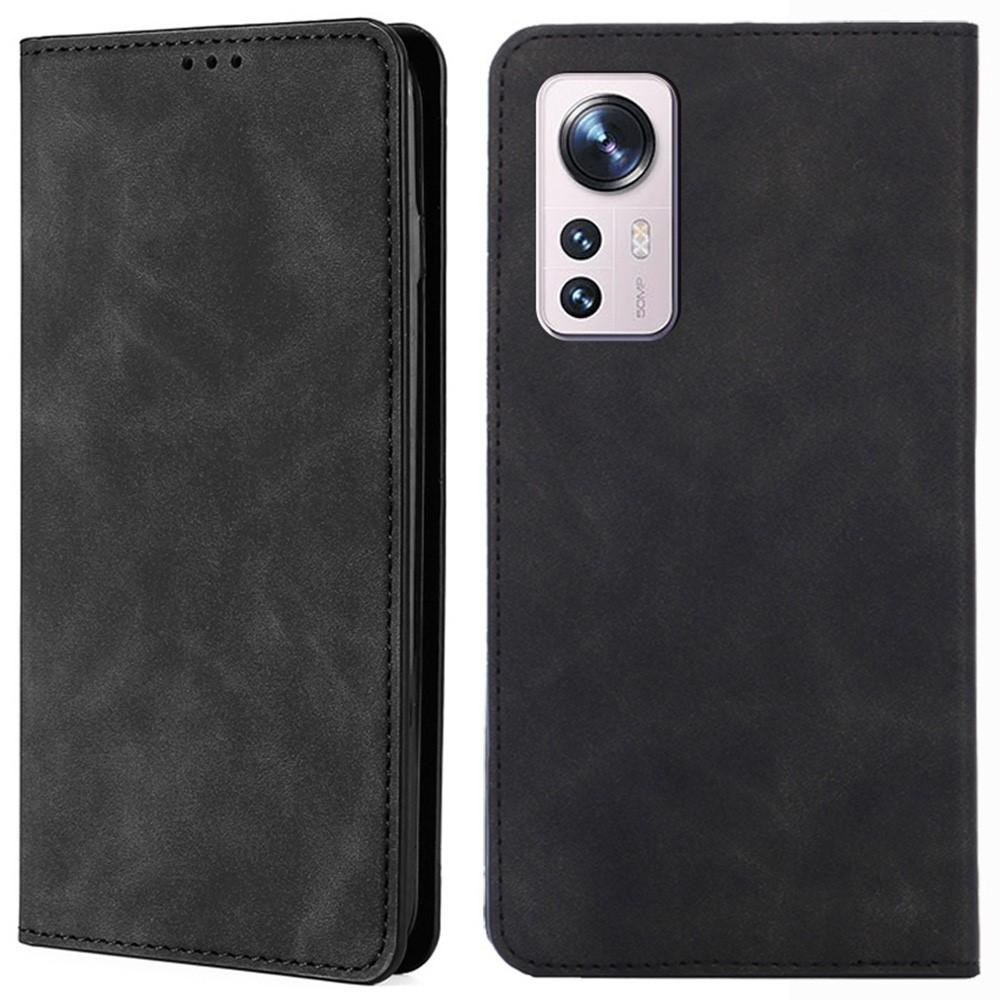 Xiaomi 12 Pro Skin-Touch Feeling PU-nahkainen puhelimen kansi Retro-muotoinen koko vartalon iskunkestävä magneettinen vaimentava kääntöteline kortinpidikkeellä - musta