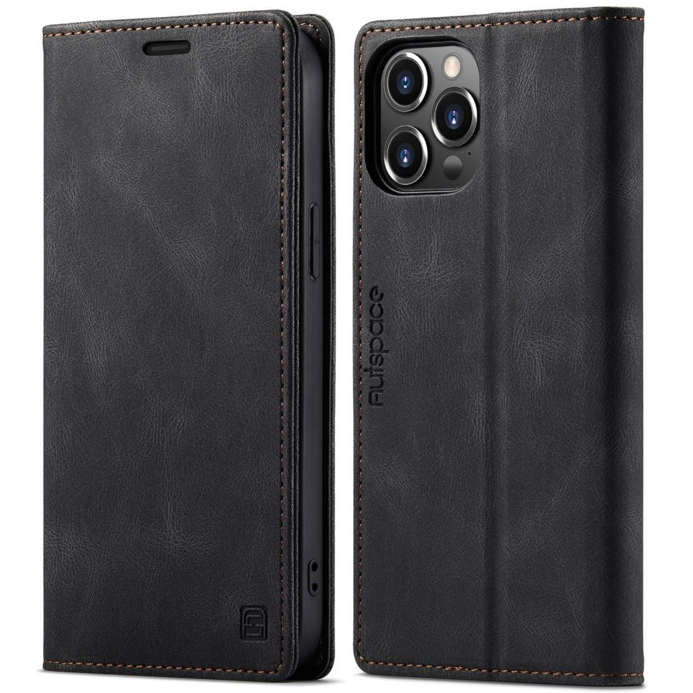 AUTSPACE A01 Retro Lompakkokotelo - iPhone 13 Pro Max - Musta