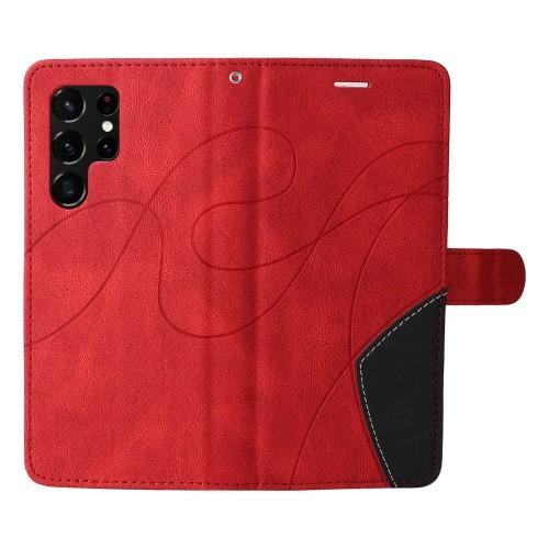 Matkapuhelinkansi Samsung Galaxy S23 Ultra KT -nahkasarjalle Kaksivärinen liitoskirjatyylinen PU-nahkainen puhelinkotelo hihnalla Valmistettu PU-nahasta ja TPU-materiaalista, kaksikerroksinen suojaus Muo
