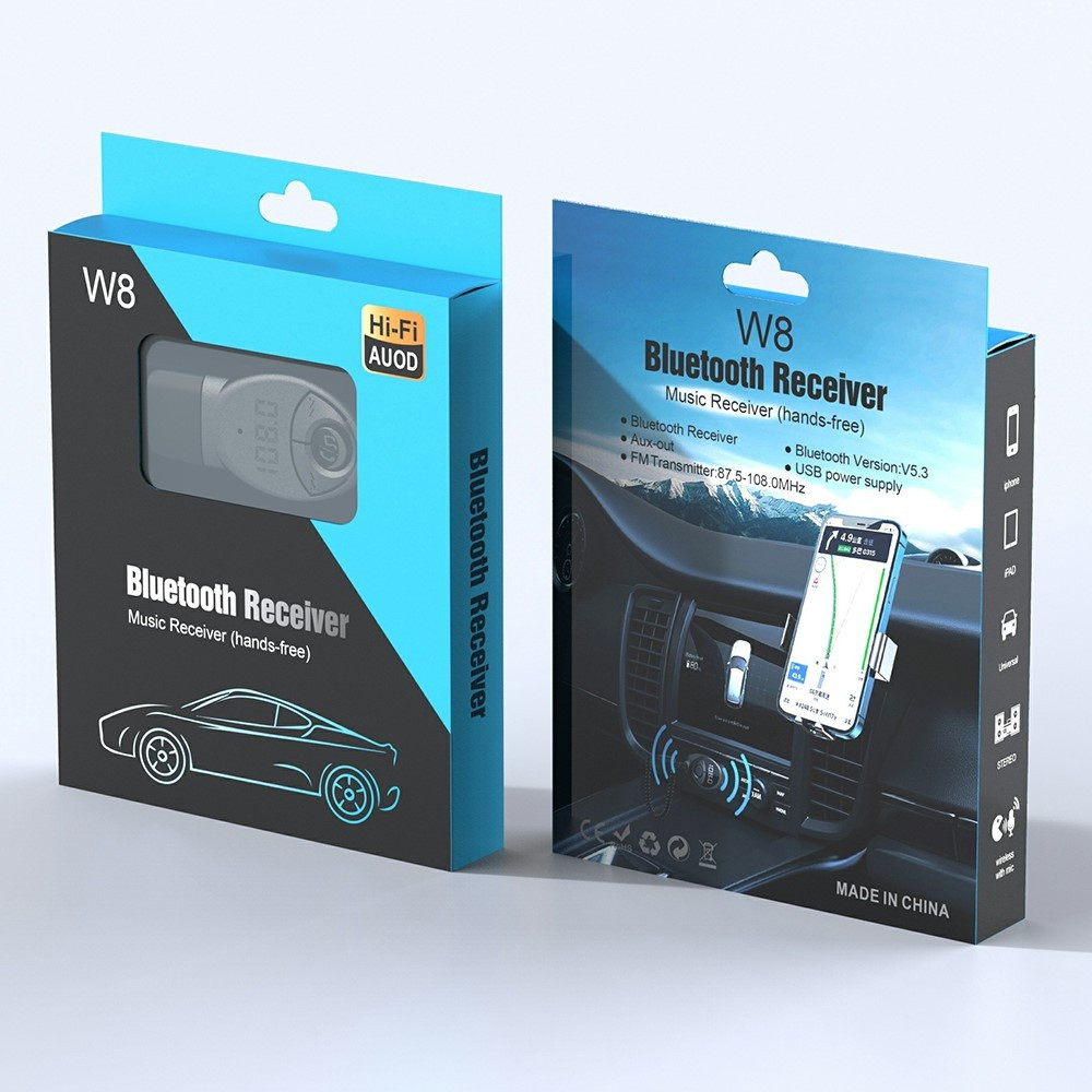 W8 Auton Äänensovitin Bluetooth-vastaanotin FM-lähetin teleskooppisella kaapelilla Auton stereo muuttuu Bluetooth-langattomaksi toistoksi sekunneissa, liitä se suoraan ja käytä sitä
