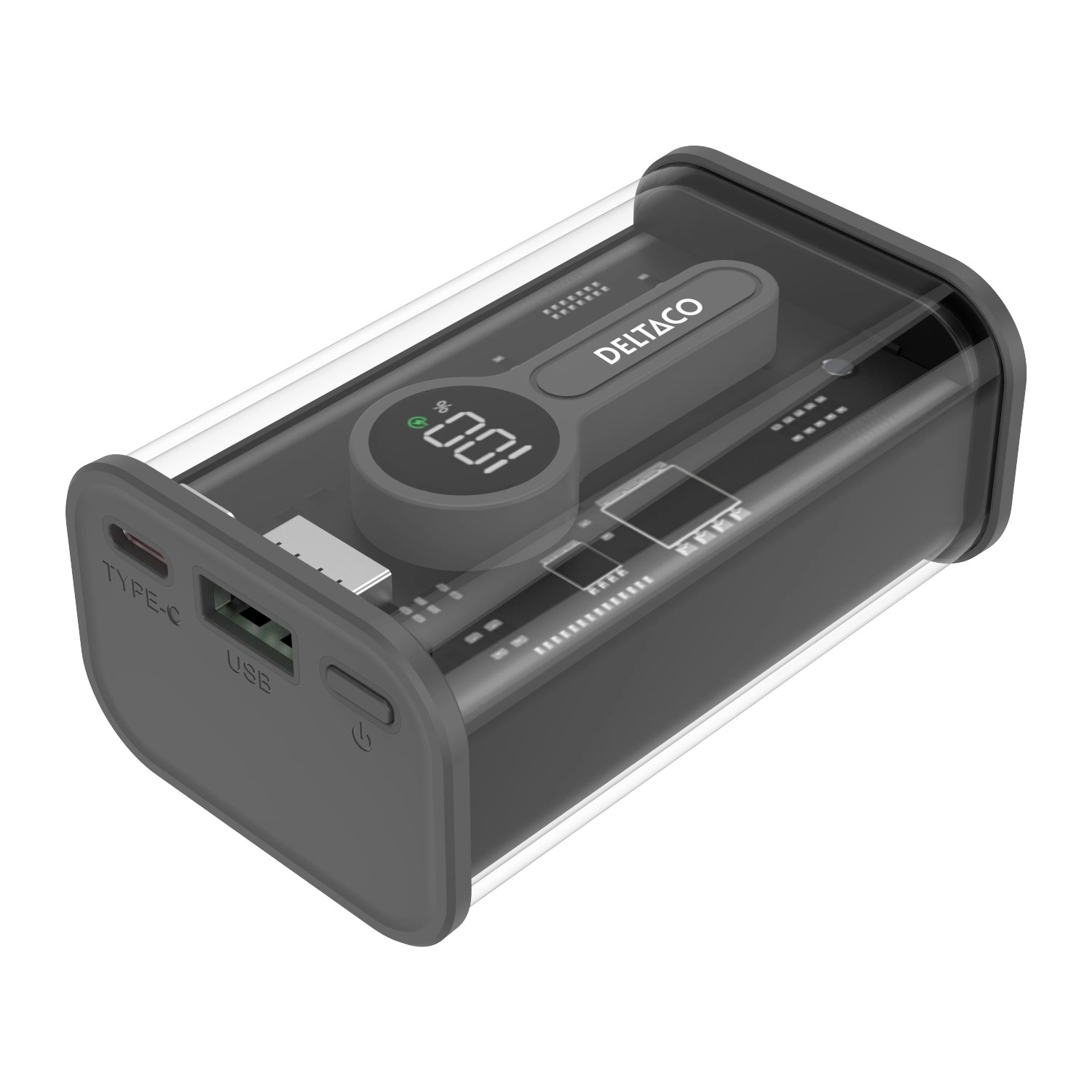 Deltaco Transparent virtapankki pikalatauksella 10 000 mAh