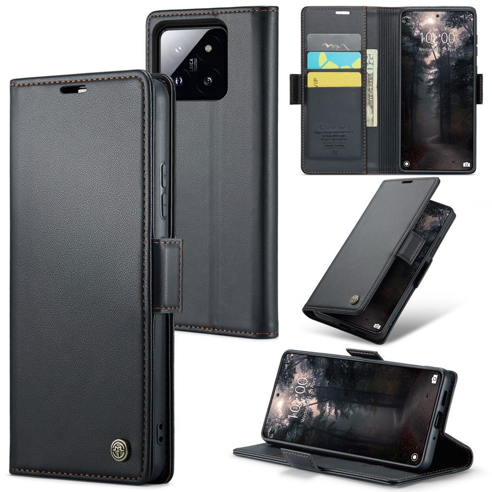 CASEME 023 -sarja Xiaomi 14 -kuori PU-nahkaa, jossa RFID-esto älypuhelinsuoja Huolellisesti valittu PU-nahka ja paksu TPU-sisäkuori suojaavat puhelintasi ulkopuolelta sisälle