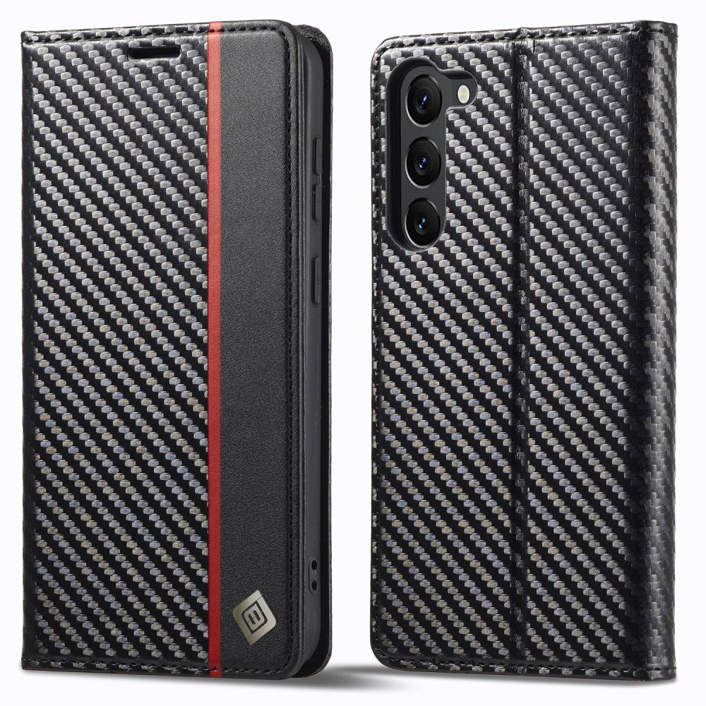 LC.IMEEKE Samsung Galaxy S24 Carbon Fiber Texture Phone Flip -nahkainen lompakkokotelo Pudotuskestävä matkapuhelimen kansi Valmistettu PU-nahasta + TPU-materiaaleista, kotelo on kestävä ja kestävä. Pinnalla on hiilikuiturakenne, kulutusta kestävä, pölytiivis ja sormenjälkiä estävä. Se sopii puhelimeesi täydellisesti.
