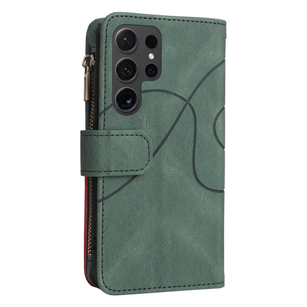 KT-monitoimisarja-5 Samsung Galaxy S24 Ultra -puhelinkotelolle Kuori Painettu kaareva viivakuvio Kaksivärinen PU-nahkainen lompakkosuunnittelu Älypuhelimen päällyste PU-nahasta