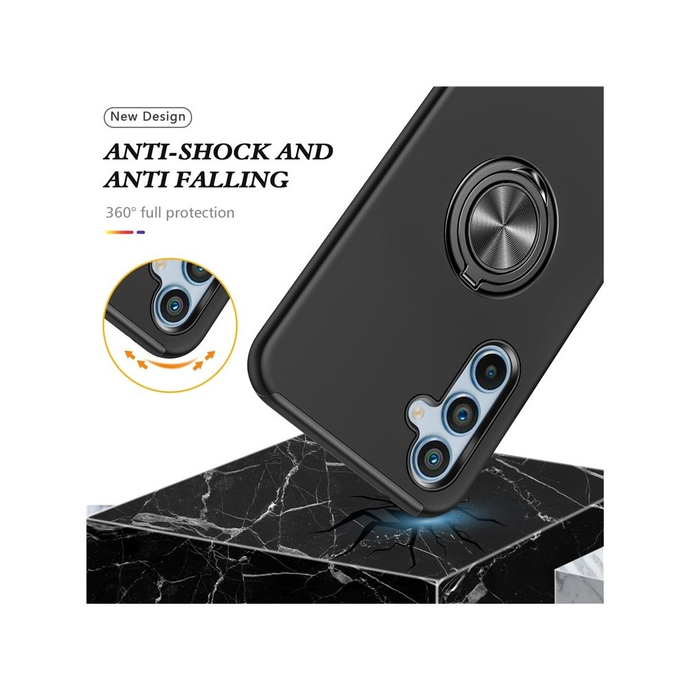 Integrert ring gjør det enkelt å bruke telefonen med én hånd og kan roteres 360 grader for bruk som stativ.