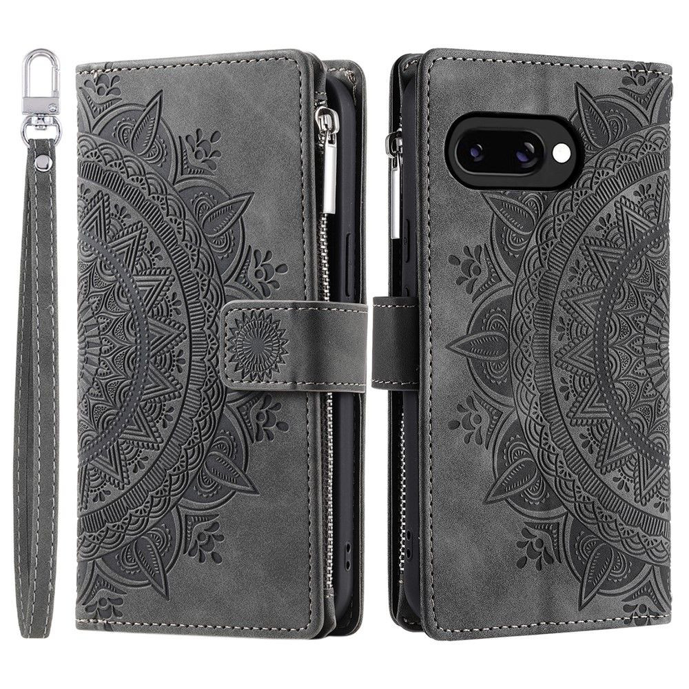 Til Google Pixel 10a Lommebokdeksel PU lær Mandala Blomstermønster- Grå