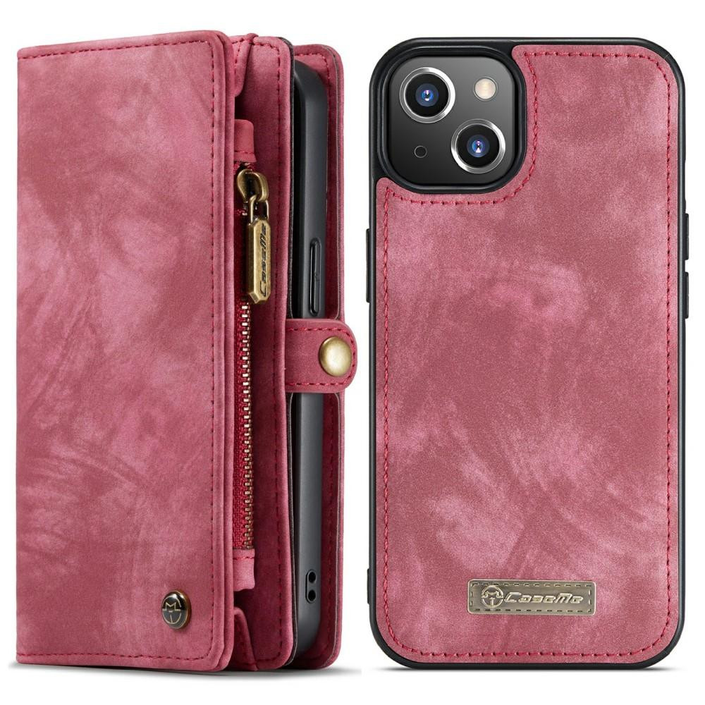 CASEME til iPhone 13 Retro Split Lærdeksel/Lommebok-deksel Flere rom - Rød Luksuriøs komplett lommebok som du samtidig kan lagre telefonen i. Elegant design som du kan lagre opptil 9 kort i. Glidelåsrom